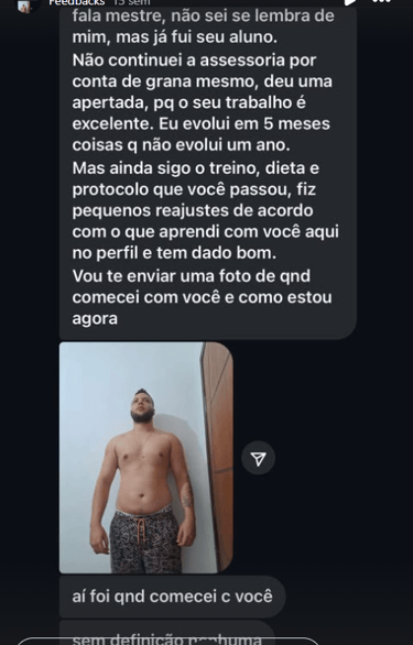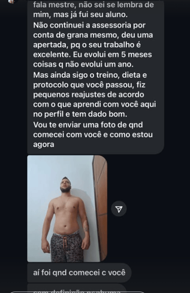 3 meses comigo. Protocolo cirúrgico, ajustes semanais.